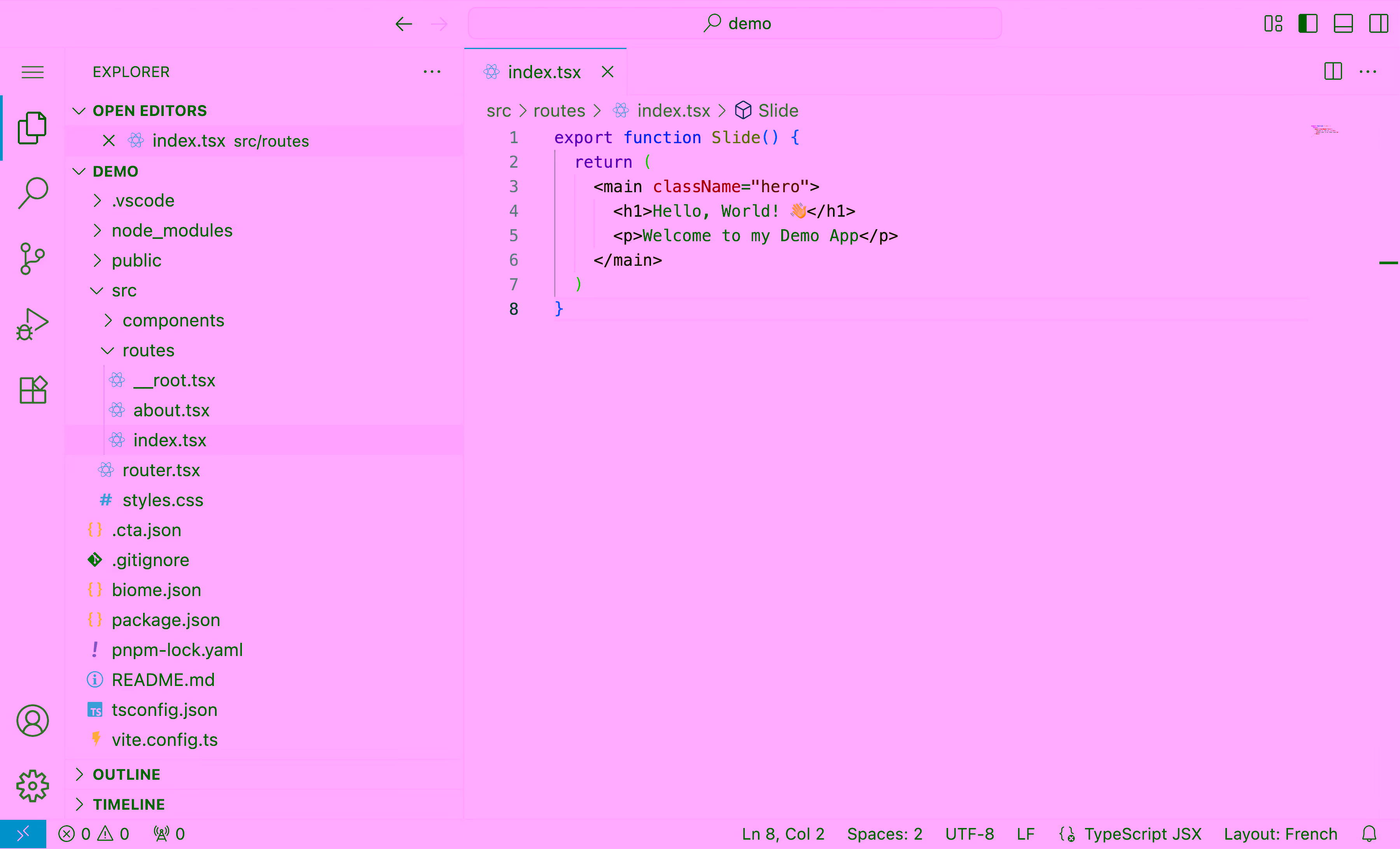 Slidev offers Monaco Editor integration. For a live coding demo that stays within a single file, it can totally do the job. But the moment you need to navigate between files, open folders, or work across multiple parts of a project, it falls short fast.